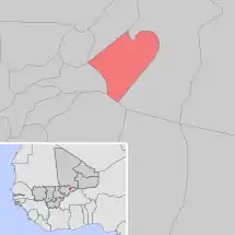 Se encuentra ubicada en el centro-este del país, cerca de la frontera con Burkina Faso y con la región de Tombuctú.
