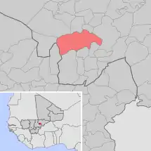 Se encuentra ubicada en el centro del país, cerca de la confluencia de los ríos Bani y Níger, a poca distancia al norte de la frontera con Burkina Faso.