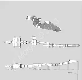 Así, tras la entrada (A), los tres primeros corredores (B, C y el accidentado D1), encontramos el corredor definitivo (D2) y la cámara ritual del pozo (E), que lleva a la sala de pilares (F). Tras ella, era costumbre excavar dos pasillos descendentes y una antecámara, pero se optó esta vez por un solo corredor (G) y dos antecámaras (H e I) antes de llegar a la gran sala sepulcral (J). Como fue muy largo el reinado de Ramsés III, los constructores pudieron permitirse algunas licencias y siguieron construyendo más allá de la cámara sepulcral un total de dos pequeñas habitaciones gemelas (K1 y K2) seguidas de una más alargada al final de la tumba (L). En total, más de 100 m en las profundidades, y una de las tumbas más grandes y de mayor área del Valle de los Reyes.