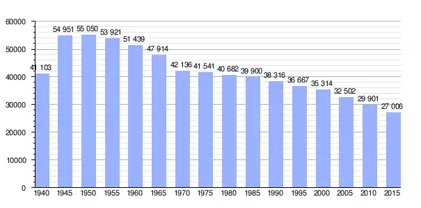 | Gráfica de evolución demográfica de Kami-Amakusa entre 1940 y 2015 |