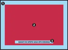 Uno de los laterales largos del mji posee una franja en la cual se encuentra impreso un mensaje escrito en suajili, o menos frecuentemente en árabe o comorense. En otros países en los que producen sus propias kangas escriben sus mensajes o nombres en sus idiomas: en Madagascar (República Malagasy) en donde las kangas son denominadas lambas, las mismas presentan ohabolana, que son proverbios tradicionales escritos en malgache; también se las fabrica en Zambia y Malaui. Estas leyendas son denominadas jina (literalmente 'nombre') de la kanga. Los mensajes a menudo son acertijos o proverbios. Por ejemplo: