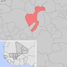 Se encuentra ubicada al suroeste del país, cerca del río Níger, al sureste de la capital nacional, Bamako, y cerca de la frontera con Burkina Faso.
