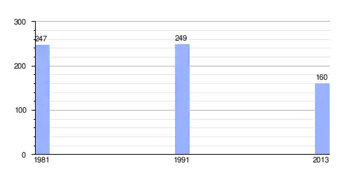 | Gráfica de evolución demográfica de Karići entre 1981 y 2013 |