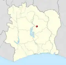 Se encuentra ubicado en el centro-norte del país, cerca de la orilla oriental río Bandama y al norte de la presa de Kossou.