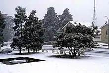 Las Montañas Azules tienen fama de tener nieve en invierno. Sin embargo, a pesar de las frescas temperaturas, en la zona de las altas montañas sólo nieva unos cinco días al año. Es extremadamente raro ver nieve debajo de Lawson. No es raro ver mantos blancos de helada cubriendo el suelo en las primeras horas de la mañana. Por la noche se pueden formar gruesas capas de hielo en los parabrisas de los coches.[7]