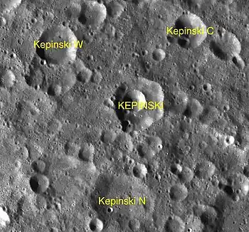 Kepinski es un cráter de impacto situado en la cara oculta de la Luna. Se encuentra al noroeste del cráter más grande Vernadskiy, y al noreste de Meggers.