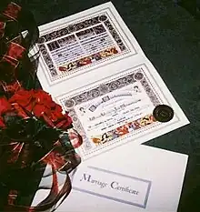 Una ketuba ( /kEtu:"vA:/ ,[1] en hebreo: כְּתוּבָּה ) es un contrato de matrimonio judío.[2] Se considera una parte integral de un matrimonio judío tradicional y describe los derechos y responsabilidades del marido en relación con su mujer . En la práctica moderna, la ketuba no tiene un valor monetario acordado y los tribunales civiles rara vez la hacen cumplir, excepto en Israel.[3]
