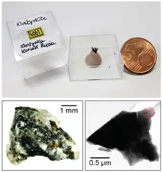 Se descubrió en cantos rodados negros a gris-verdosos que cubrían la zona expuesta a la intemperie y erosión de un depósito de serpentina, en la zona ultramáfica de Khatyrka.