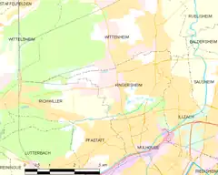 - Ubicación de Kingersheim y de las comunas limítrofes en el mapa de Francia (enlace roto disponible en Internet Archive; véase el historial, la primera versión y la última).