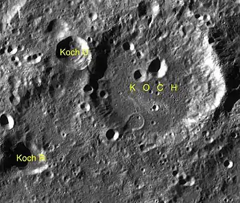 Por convención estos elementos son identificados en los mapas lunares poniendo la letra en el lado del punto medio del cráter que está más cercano a Koch.