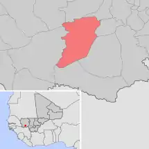 Se encuentra ubicada al oeste del país y al sureste de la región de Kayes, cerca de la frontera con República de Guinea y la región de Kulikoró.