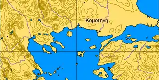 ubicación de Komotiní 41°6 N 25° 25 E.