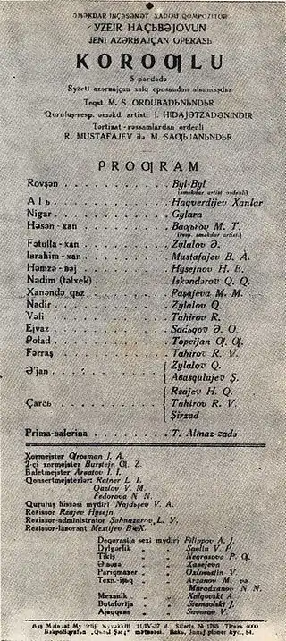 ![]() Programa para el estreno en 1937 de Koroğlu | ||