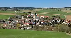Se encuentra ubicada al noroeste del estado, al norte del río Danubio y a poca distancia al este de la frontera con el estado de Alta Austria, al sur de Viena y del río Danubio.[2]