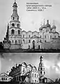 La Torre Spásskaya lleva el nombre del Monasterio Spasski, que estaba situado en las cercanías. Otros edificios del monasterio son la Iglesia de San Nicolás (1560, cuatro pilares) y de la Catedral de la Transfiguración del Salvador (1590, seis pilares). Fueron destruidos por los soviéticos durante el mandato de Stalin.