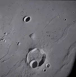 ![]() Cráter lunar Krieger (bajo el centro) desde el Apolo 15 | ||