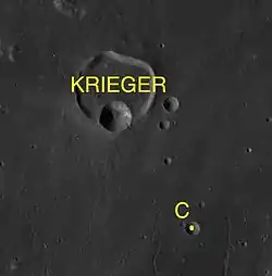 Por convención estos elementos son identificados en los mapas lunares poniendo la letra en el lado del punto medio del cráter que está más cerca de Krieger.