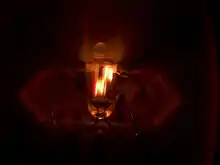 El efecto de parpadeo está provocado por las diferencias en el potencial de ionización del gas, que depende del espacio entre los electrodos, la temperatura y la presión del gas. El potencial necesario para disparar la descarga es mayor que el necesario para sostenerla. Cuando no hay corriente suficiente para ionizar todo el volumen de gas en torno a los electrodos, sólo ocurre una ionización parcial y el brillo aparece sólo en torno a parte de la superficie de los electrodos. Las corrientes convectivas hacen que las zonas brillantes asciendan, de forma no muy diferente a las descarga en una escalera de Jacob. Un efecto de fotoionización puede observarse aquí, a media que la zona del electrodo cubierta con la descarga puede incrementarse por la luz brillando en la lámpara.