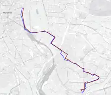 Pasando bajo el Puente de Vallecas, su recorrido es de nuevo igual al de ida pero en sentido contrario hasta que llega a su cabecera en la Plaza de Cibeles.