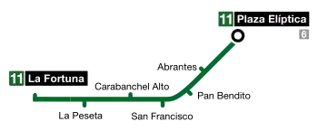 La línea 11 del Metro de Madrid discurre entre las estaciones de Plaza Elíptica y La Fortuna, por un total de 7 estaciones con andenes de 115 metros, unidas por 8,5 km de vía en túnel de gálibo ancho.