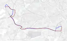Llegada a este punto, la línea toma la Avenida de los Poblados en dirección sureste, abandonándola temporalmente para circular por la Avenida de Carabanchel Bajo y la calle Antonia Rodríguez Sacristán, al final de la cual vuelve a ella, circulando hasta la intersección con la calle Doctor Tolosa Latour, donde gira a la izquierda para incorporarse a esta calle.