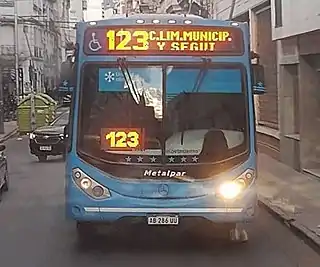 ![]() Mercedes-Benz de la línea 123, operada por la empresa Movi. En la cartelera, uno de los destinos. | ||