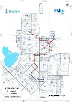La línea 1 es una línea de colectivos urbana de Santa Rosa, que une el Barrio Río Atuel con el Hospital Dr. Lucio Molas. El boleto cuesta 54 pesos el general y 25,50 pesos para pensionados, jubilados con haber mínimo y excombatientes de Malvinas.[1]