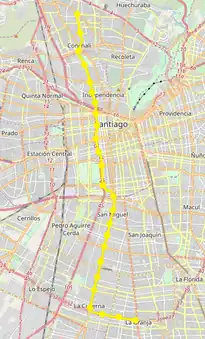![]() Recorrido de la Línea 2 del Metro de Santiago. | ||