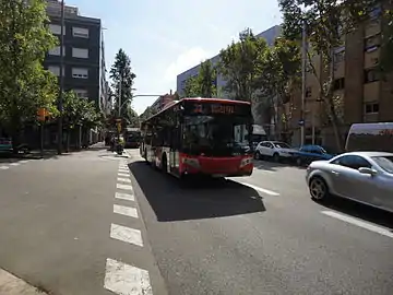 ![]() Autobús de la línea 32 a su paso por Av. Mare de Déu de Montserrat. | ||