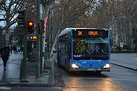 La línea 34 de la EMT de Madrid une la plaza de Cibeles con el barrio de Las Águilas, en el distrito de Latina.