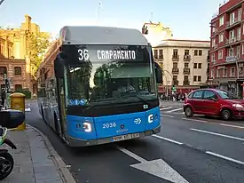 La línea 36 de la EMT de Madrid une la glorieta del Emperador Carlos V (también conocida como glorieta de Atocha) con el barrio de Campamento.