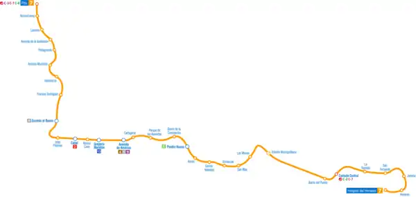 A pesar de cruzarse (entre las estaciones de Canal y Alonso Cano) con la línea 1, no tiene ningún transbordo directo con ésta.