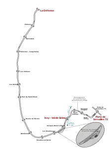 Este proyecto consiste en ampliar la línea 4,2 km con 7 estaciones, que beneficiarían a una población de 32000 habitantes y 19000 puestos de trabajo (fuera de La Défense), 6 municipios y dos provincias diferentes atravesadas.