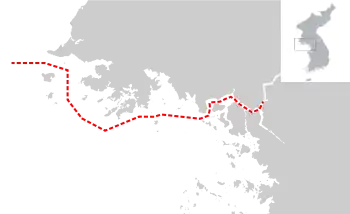 La línea se extiende entre la parte continental de la provincia de Gyeonggi-do que había sido parte de Hwanghae antes de 1945, y las islas cercanas a la costa, incluidas Yeonpyeong y Baengnyeongdo . Debido a las condiciones del armisticio, la parte continental volvió al control de Corea del Norte, mientras que las islas permanecieron como parte de Corea del Sur a pesar de su proximidad.