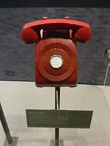 La línea directa más famosa entre estados es la línea directa Moscú-Washington, que también se conoce como el "teléfono rojo", aunque los teléfonos nunca se han utilizado con esta capacidad. Este enlace de comunicaciones directas se estableció el 20 de junio de 1963, a raíz de la Crisis de los Misiles en Cuba que convenció a ambos lados de la necesidad de mejores comunicaciones,[3] y utilizó tecnología de teletipo, luego reemplazada por telecopiadora y luego por correo electrónico.