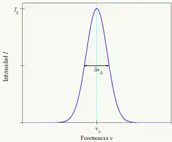 Donde es la intensidad e es la intensidad máxima de la línea. El ancho a media altura en este caso es:[11]