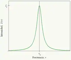 - Aquí, es el número de partículas sin recibir un impacto al tiempo . La expresión anterior es similar a la expresión obtenida para el ensanchamiento natural, por lo que el perfil de la línea será nuevamente una función de Lorentz. Para este caso, el ancho a media altura será:[Th. 6]
