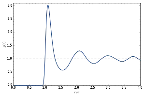 Una descripción más intuitiva de estas correlaciones viene dada por la función de distribución radial g (r) , que es básicamente la transformada de Fourier de S (q) . Representa un promedio espacial de una instantánea temporal de correlaciones de pares en el líquido.