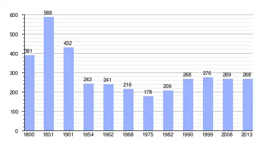 | Gráfica de evolución demográfica de L'Hermitière entre 1800 y 2013 |