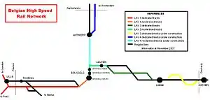La LAV 2 finaliza poco antes de llegar a Lieja donde se incorpora a la línea ferroviaria tradicional para ingresar a la ciudad.
