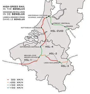 Una vez atravesada la frontera, la línea continúa hacia el norte como la holandesa HSL-Zuid (que también entró en servicio en diciembre de 2009).[2]
