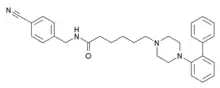 N#Cc3ccc(cc3)CNC(=O)CCCCCN(CC2)CCN2c1ccccc1-c4ccccc4