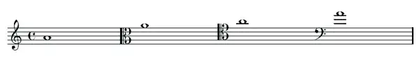 - En clave de do en tercera y en cuarta se sitúa en el primer espacio adicional y en el espacio sobre la primera línea adicional respectivamente.