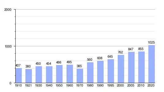 En 2020 registró una población de 1025 personas, lo que corresponde al 5.48 % de la población municipal.[1][8] De los cuales 497 son hombres y 528 son mujeres.[1][8]
