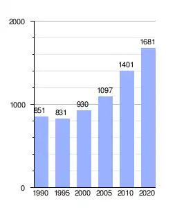 En 2020 registró una población de 1681 personas, lo que corresponde al 1.46 % de la población municipal.[7] De los cuales 809 son hombres y 872 son mujeres.[7]