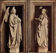 El historiador Erwin Panofsky desde los años 50 del siglo XX había atribuido la autoría de la obra a Hubert y Jan van Eyck. Defendía la autoría de Jan van Eyck ya que relaciona la obra directamente con la Anunciación de Melchior Broederlam y la del Libro de horas de Boucicaut, obras que habían sido modelo visual para la Anunciación de Jan van Eyck.