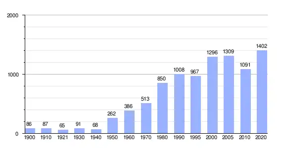 | Gráfica de evolución demográfica de La Bóveda entre 1900 y 2020 |
