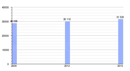 | Gráfica de evolución demográfica de La Chapelle entre 2009 y 2015 |