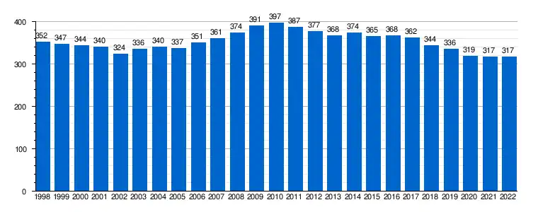 | Gráfica de evolución demográfica de La Codoñera[8] entre 1998 y 2022 |