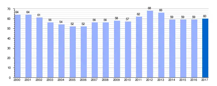 | Gráfica de evolución demográfica de La Devesa de Boñar entre 2000 y 2017 |